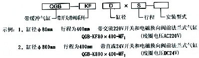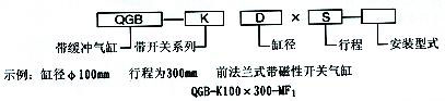 本系列气缸设计参数与安装尺寸及安装形式代号与QGA、QGB系列气缸相同,磁感应发讯器“CK系列开关、磁环”可根据用户要求选用。